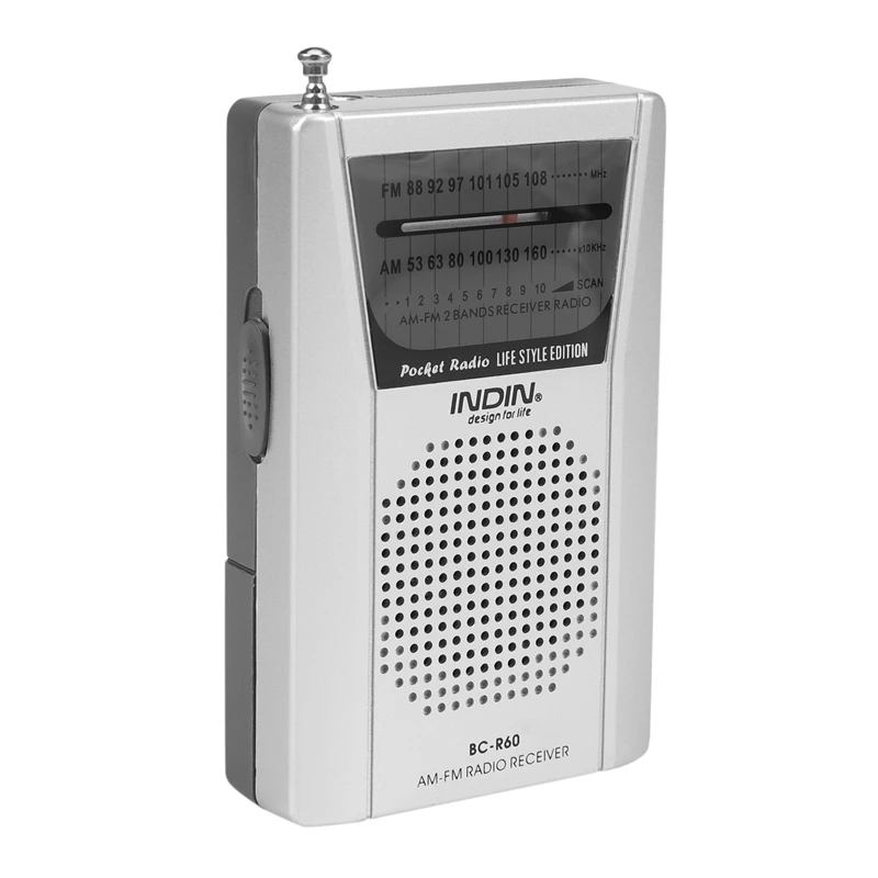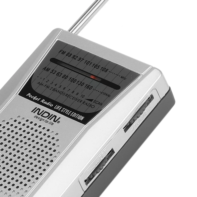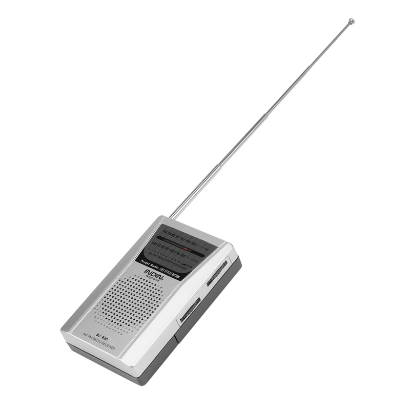 Карманная телескопическая антенна, мини AMFM, 2-полосный радиоприемник с динамиком, серебристый