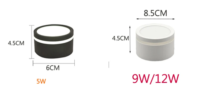 ПараметрыМощность: 5 Вт 7 Вт 9 Вт 12 ВтНапряжение: ac220вНоминальный световой поток: 90-100 лм/ВтСветодиодный Тип чипа: чипы 2835Цветовая температура:Теплый белый (3000-3500K)Белый (6000-6500k)Индекс цветопередачи:(Ra) >85Материал: алюминийУстановка: установка на поверхность. Цвет корпуса: белый/черный