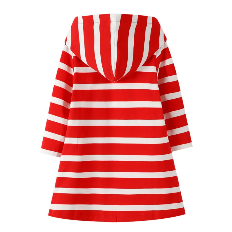 QNPQYX Новое поступление платья с капюшоном для девочек с животным принтом модные хлопковые динозавры для девочек осенне-зимнее платье детская одежда