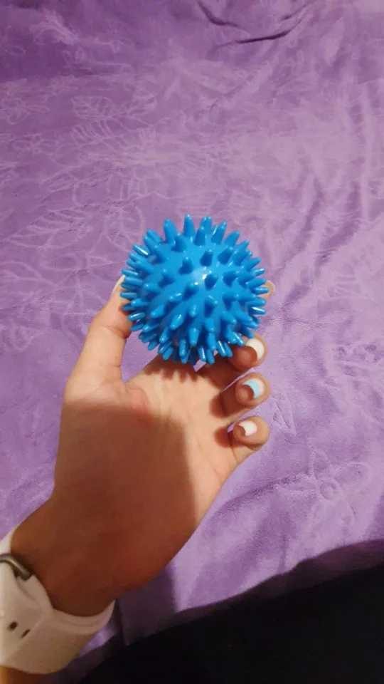 Ужасно жёсткий мяч, очень твердая пластмасса, очень острые шипы, края не обработаны, колятся. Я ожидала, что он хоть немного сжимается . Такой же эффект от деревянного ролика с шипами местного изготовления. Как таким кирпичом разминать ступню ?