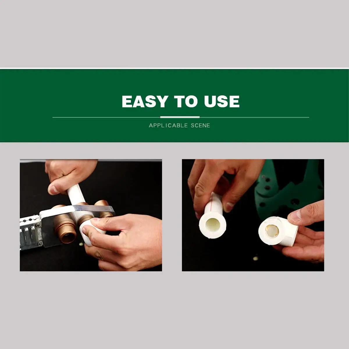ОсобенностиПредназначен для длительного использования.Нескользящая ручка, удобно брать.Подходит для оборудования для строительства труб.Для сварки PPR / Pb / PE труб, таких как пластиковые трубы и так далее.U-образный базовый дизайн увеличивает нагрузку и стабильно работает.Расширенная и утолщенная панель для хранения большего количества тепла и быстрого расплавления трубки.Двухсторонняя конструкция тепловыделения теплоотвода, отсутствие машинного горения после работы в течение длительного времени.Утолщенная теплоизоляция выгоревшая древесина PP материал, Двойная теплоизоляция, стабильное производство тепла.