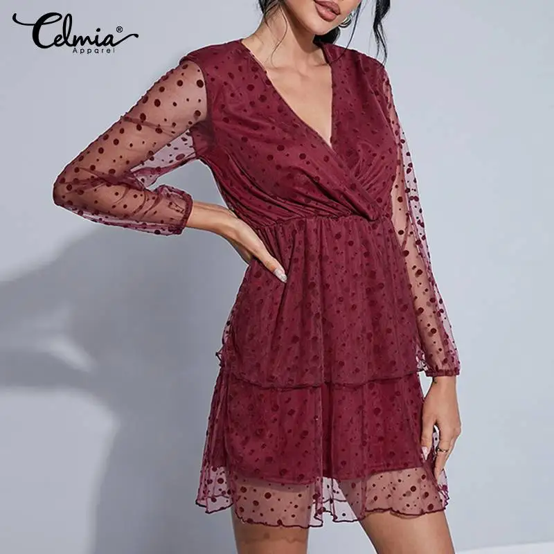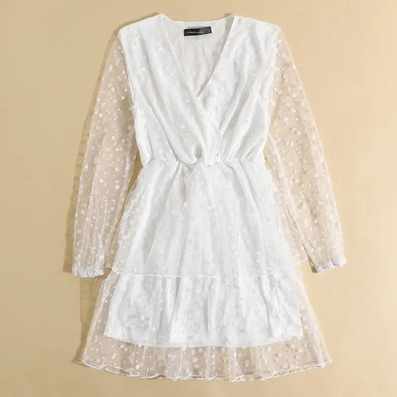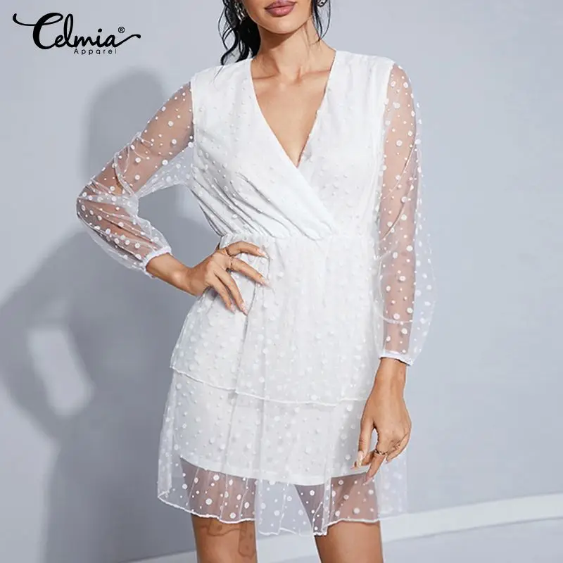 Сарафан женский в горошек, сетчатый прозрачный, сексуальный, с V-образным вырезом, лето 2021