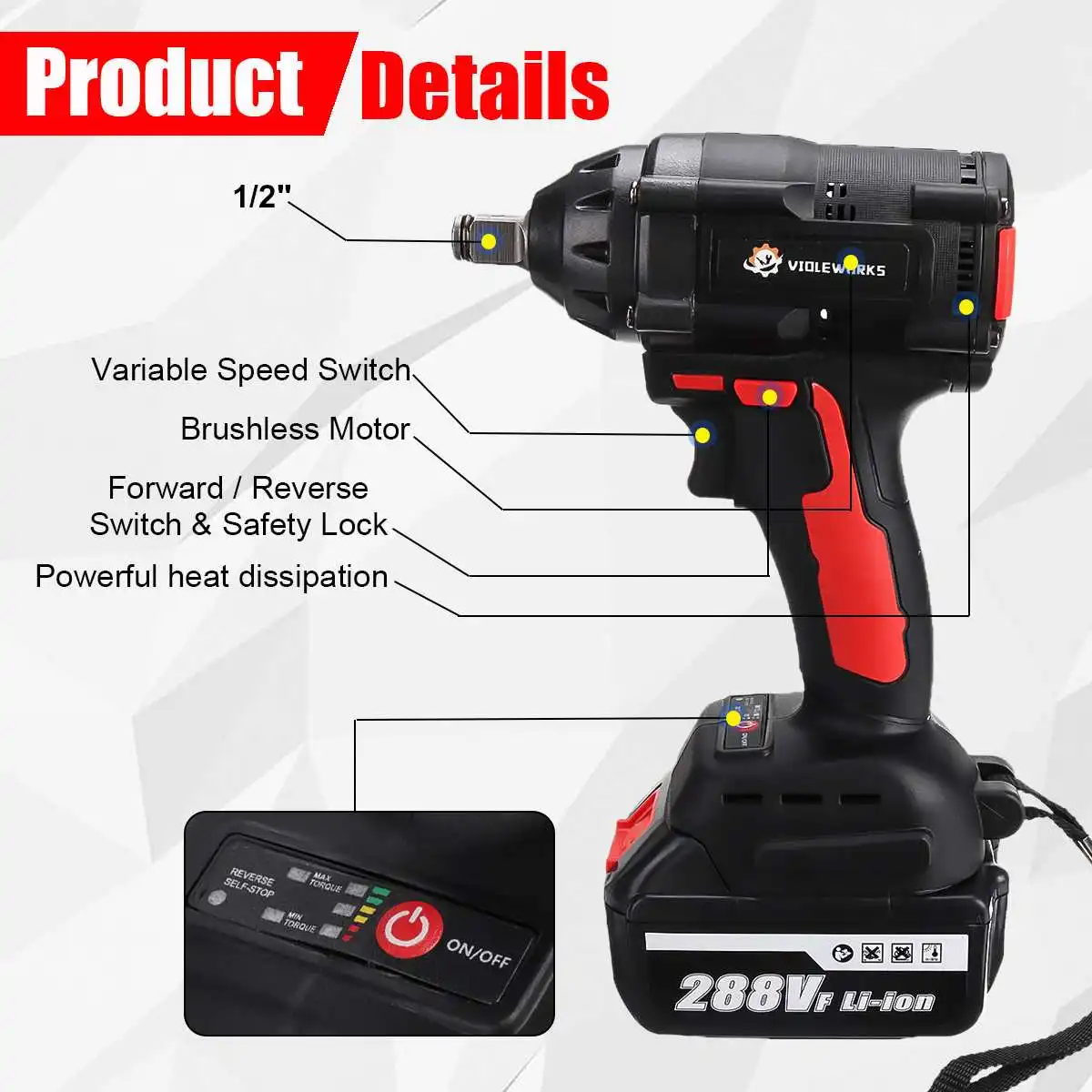 Бесщеточный Электрический ударный гайковерт 288VF 12 дюйма 520 нм Электроинструмент с литий-ионной батареей 19800 мАч для батареи Makita 18 в