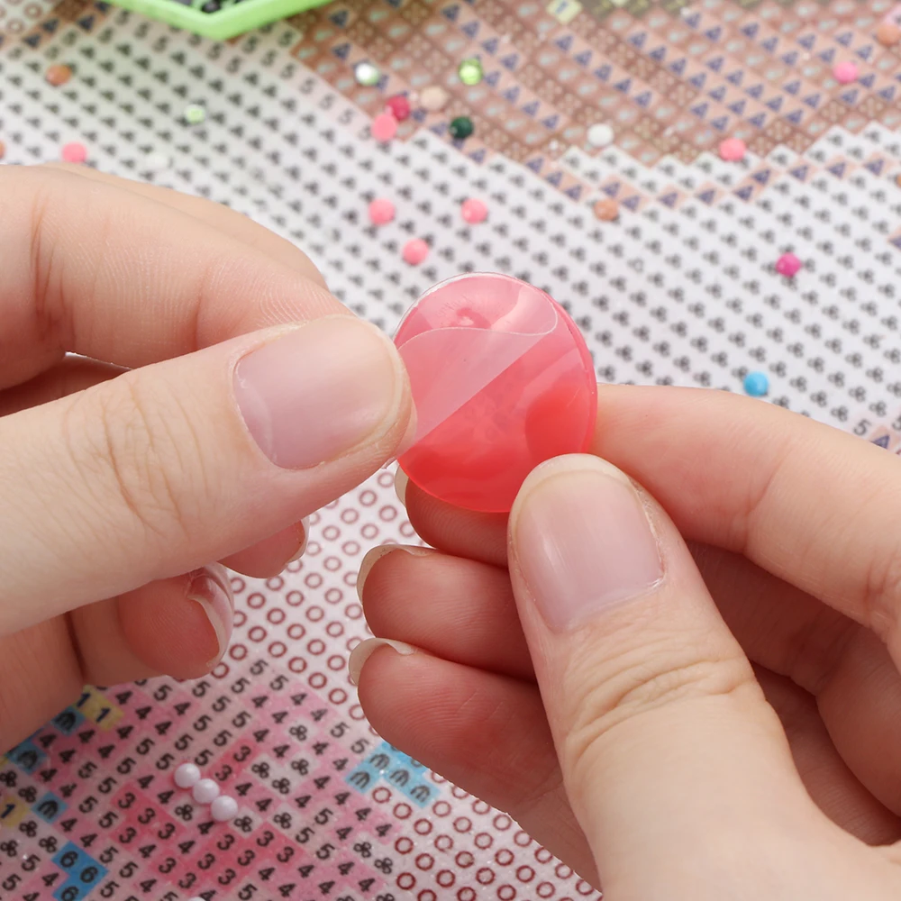2. Как использовать: сначала подготовьте другие шаги (Положите алмазы в пластиковую пластину и аккуратно Расположите алмазы в ряд), затем оторвите защитную пленку на глине и с помощью ручки для рисования надавите на глину, наклейте алмазы и приклейте алмазные бусины к картине с бриллиантами.