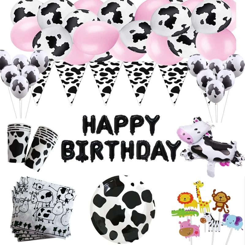 Ферма корова принадлежности для тематической вечеринки молоко корова бумажные тарелки чашки баннер скатерть воздушные шары для украшения дня рождения мальчиков Baby Shower