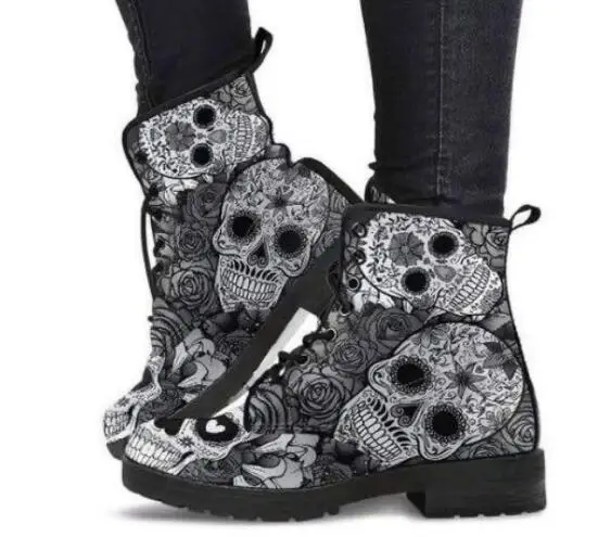 Женские ботильоны со скелетом, винтажные теплые ботинки из искусств...