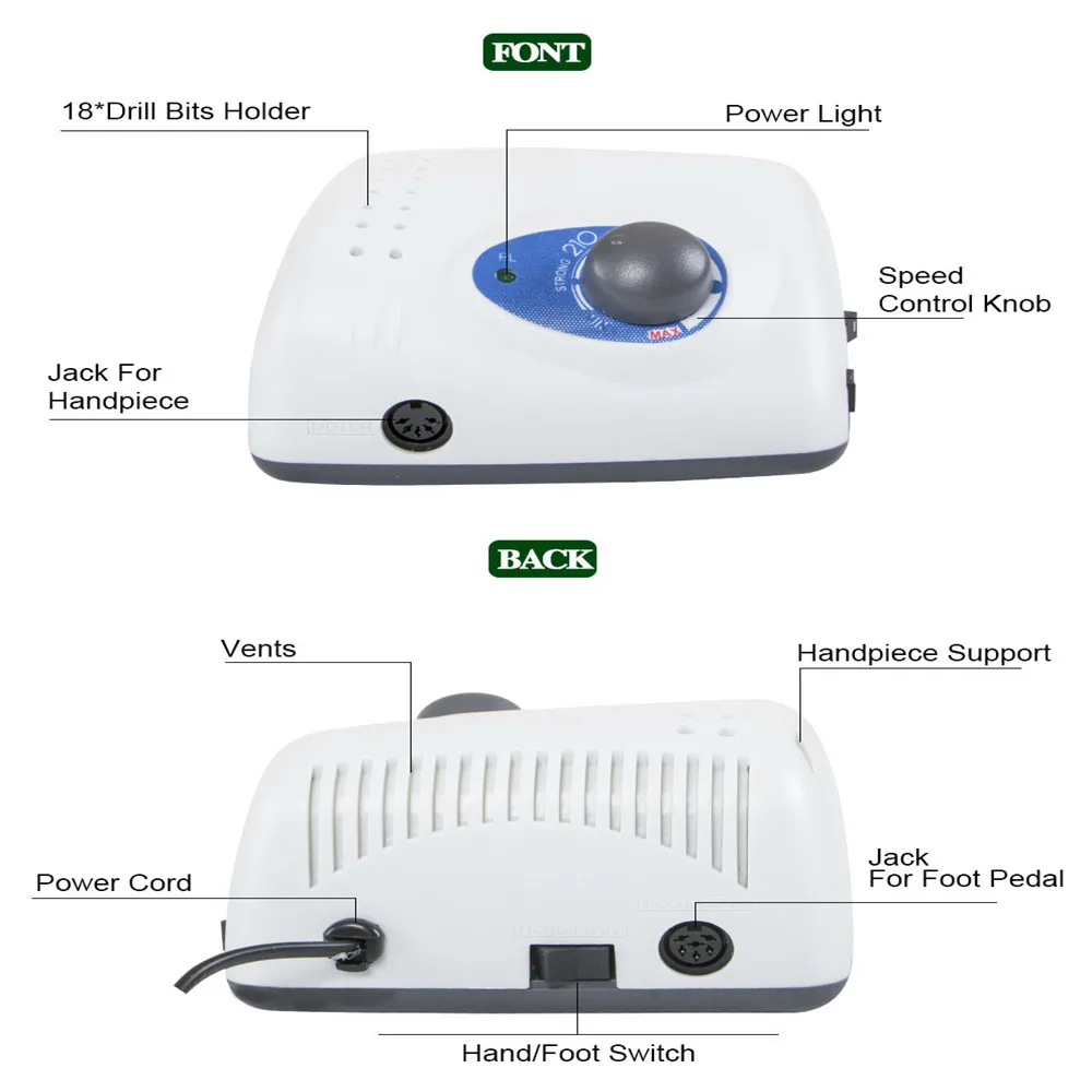Электрическая дрель для маникюра, 35000 об.мин., 65 Вт, 210