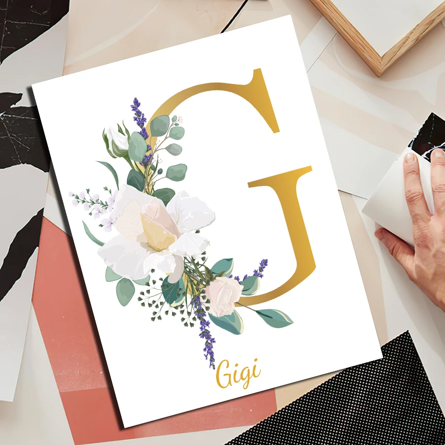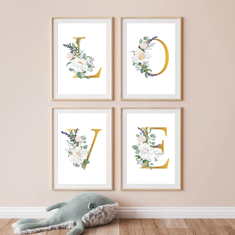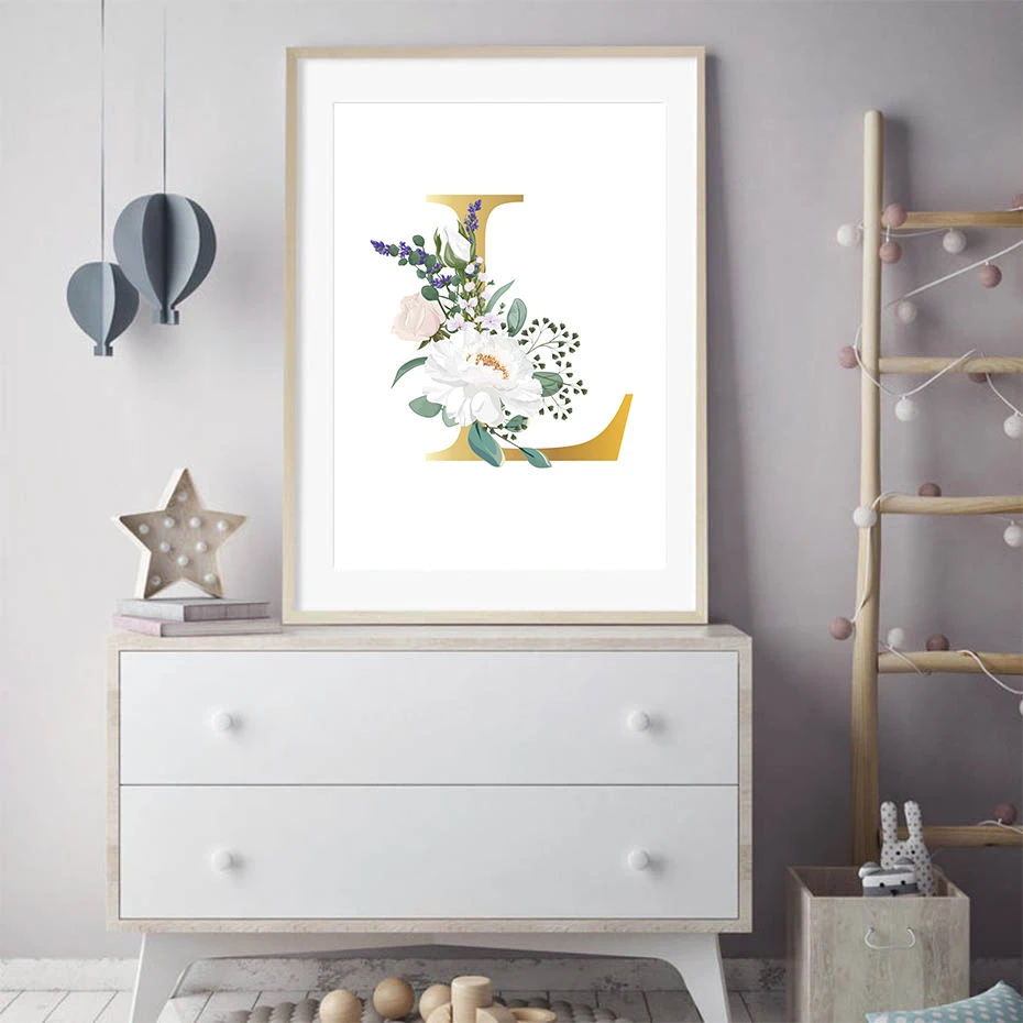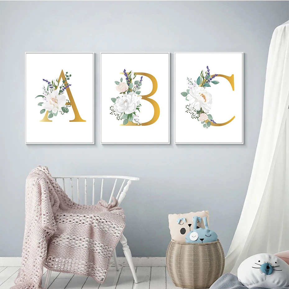 Цветочный плакат с алфавитом, 26 Английских Букв, индивидуальное имя ребенка, Настенная картина, холст, живопись, интерьер, украшение детской комнаты