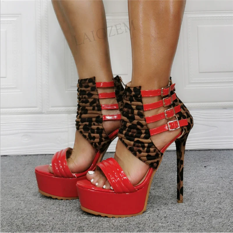 Женские сандалии на платформе и высоком каблуке, из искусственной кожи