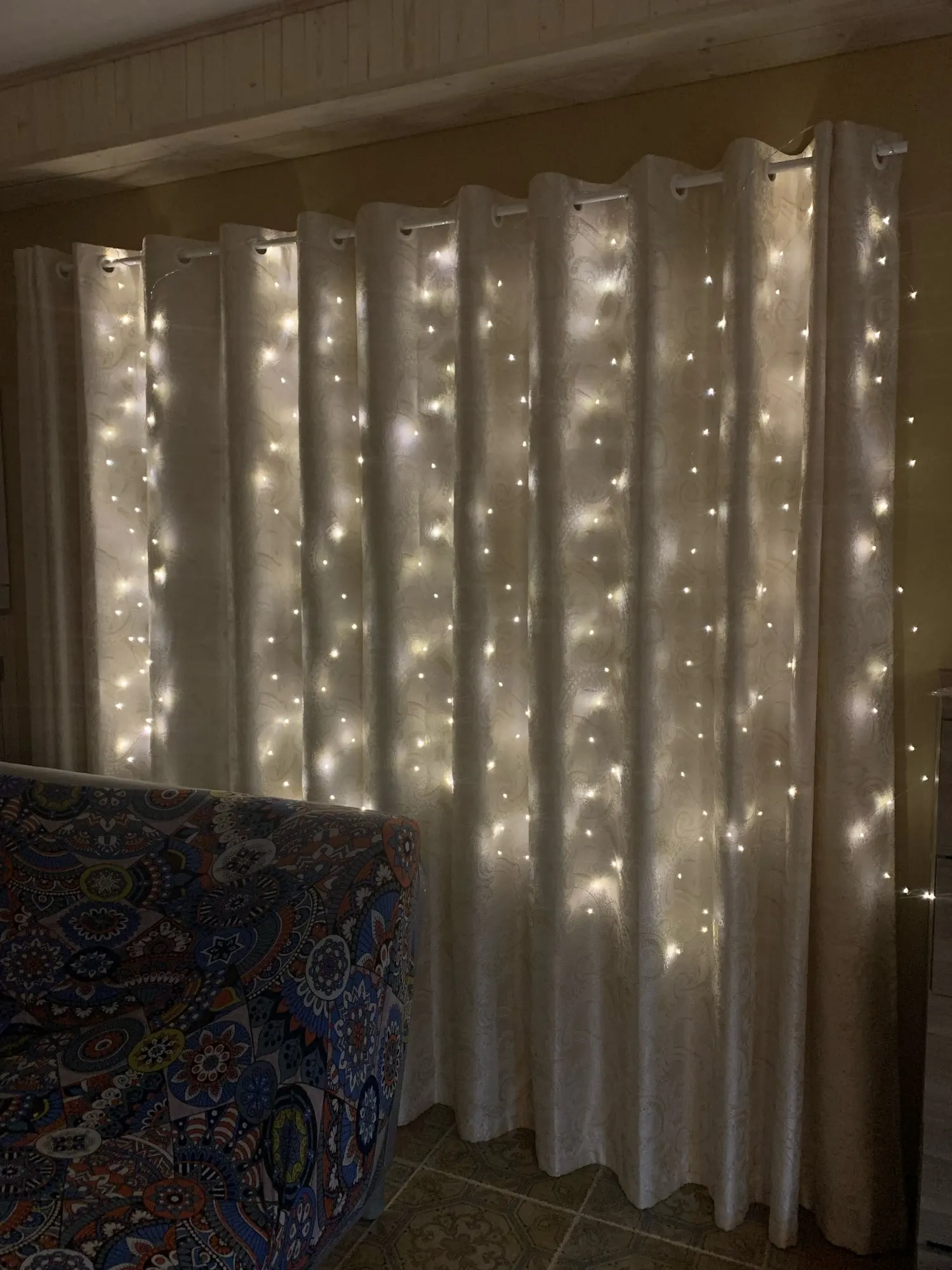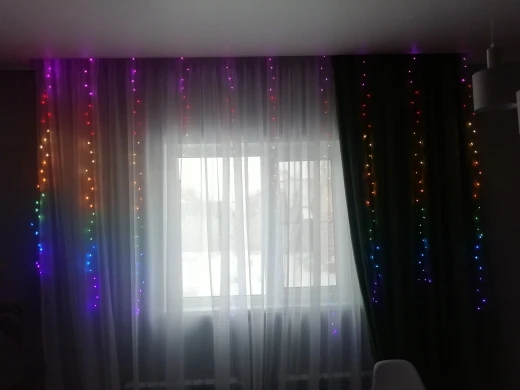 Ничего общего с картинкой товара на сайте! Впервые вижу гирлянду на окна из ПРОВОЛОКИ! Больше часа я ее пыталась размотать и сделать ровные веревочки! Так и не удалось. Занавеску просто трогать нельзя, чтоб окно открыть и проветрить, сразу все эти вот светящиеся веревочки мнутся, загибаются и висят все помятые и не ровные. Каждый раз пытаешься выпрямить обратно и ровно всё равно не выйдет. Очень плохой материал - тонкий, жесткий и мнущийся. Отдельная тема - расстояние между светящимися веревочками. Около 30 см! Ничего общего с полотном на сайте нет и близко. Такие дыры между ними и смотрится так себе. Пожалела о покупке. Как потом снять и скрутить, чтоб всё в хлам не согнулось и не переломилось, вообще не знаю. Еще момент - яркость гирлянды. С улицы практически ее не видно, крохотные огонечки, тоже впервые такие вижу. В общем, удивляюсь восторженным отзывам здесь, куплены они, что ли? Начиталась их и заказала, в итоге разочарование одно.