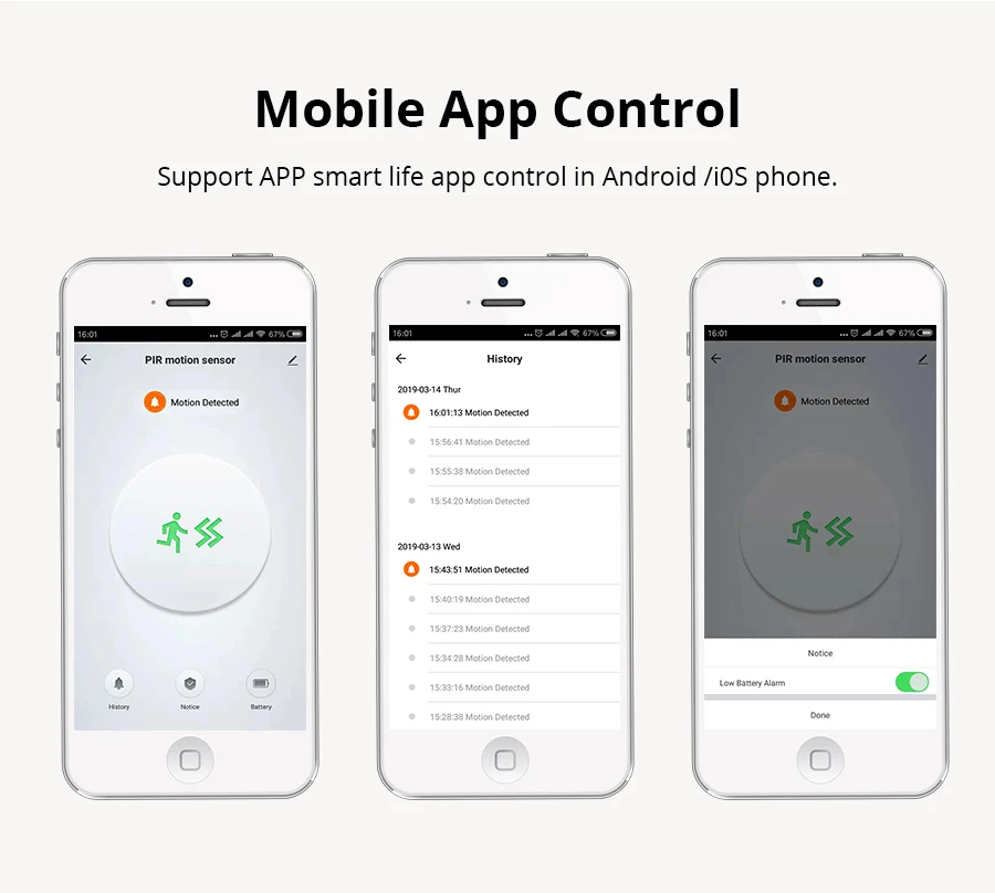 -Смартфон будет получать мгновенные уведомления при срабатывании PIR и проверять журнал в приложении.