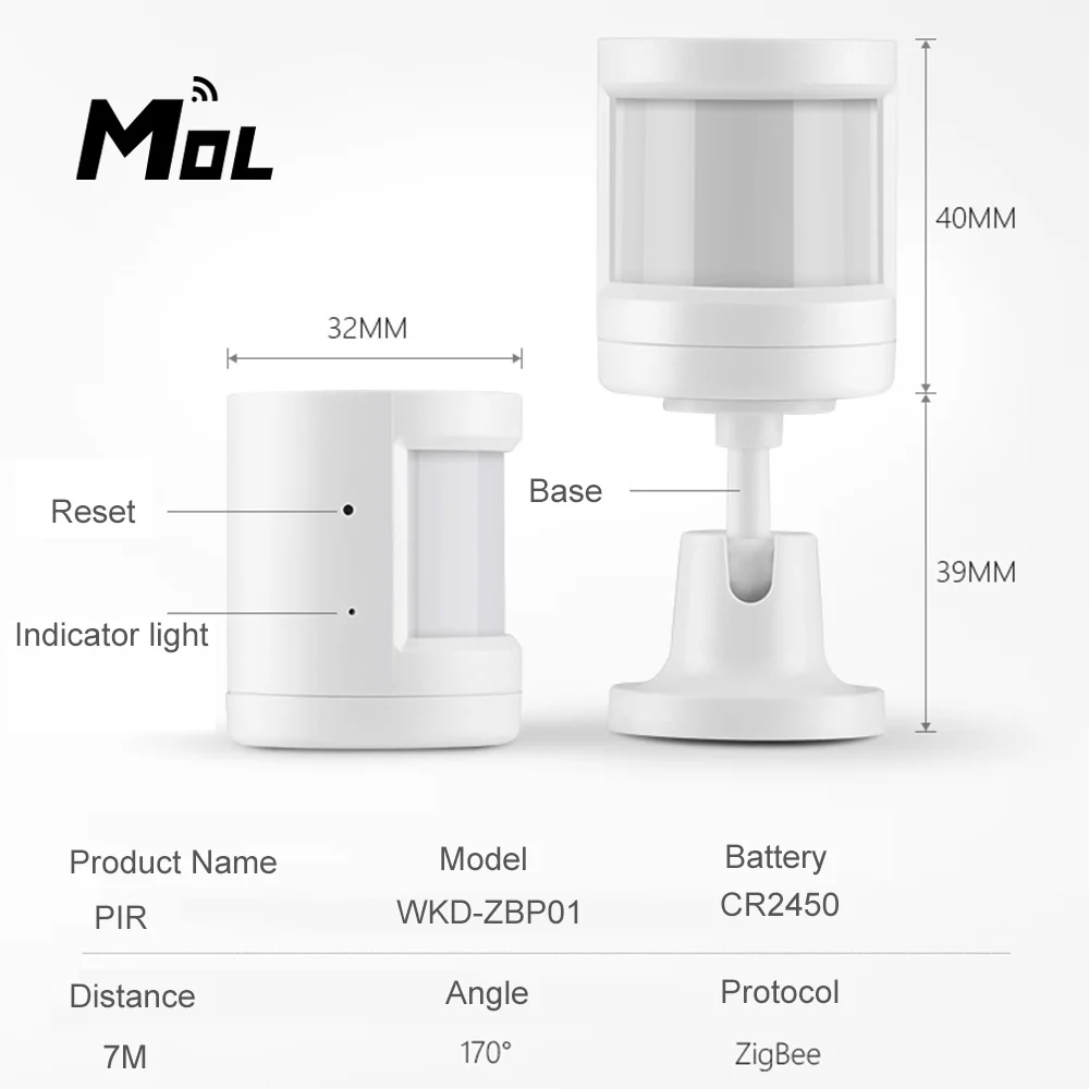 Беспроводной смарт-датчик движения MOL Tuya ZigBee, домашняя система сигнализации с питанием от батарейки, Wi-Fi