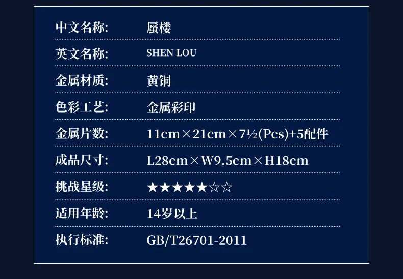 Характеристики:Бренд: PiececoolИмя: Шэнь ЛуНаборы металлических 3D-МОДЕЛЕЙ