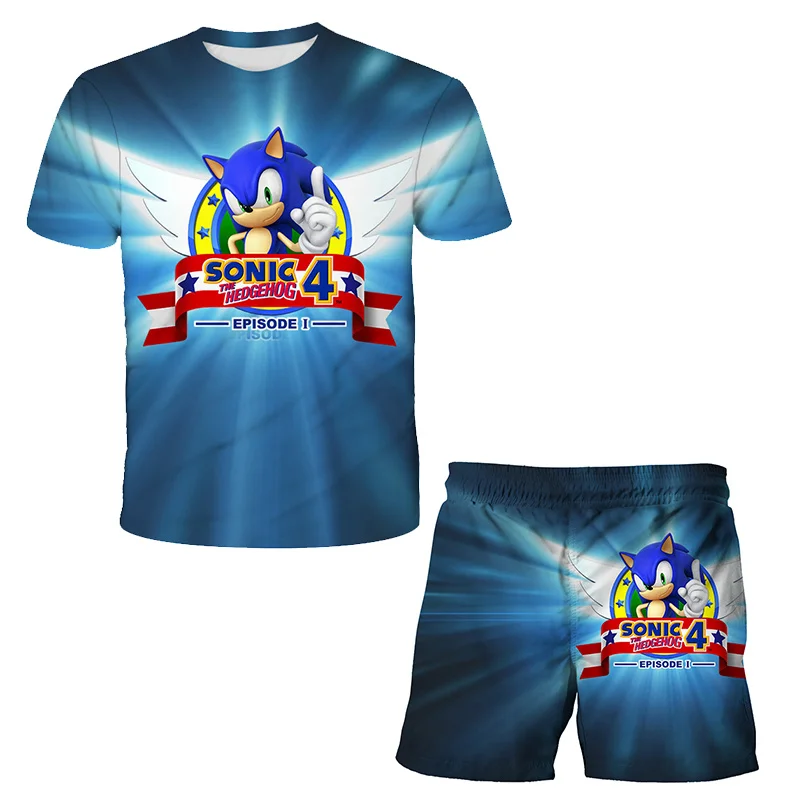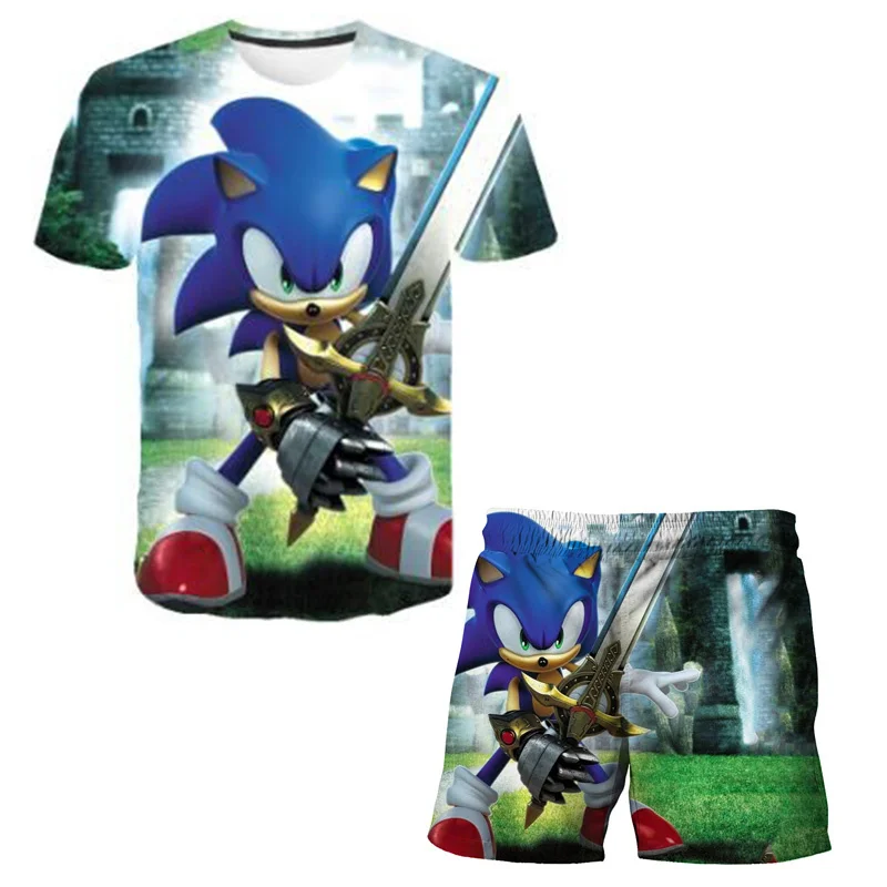 Летняя детская одежда 2021, костюмы с 3D-принтом Sonic, верх и шорт...
