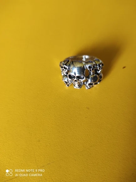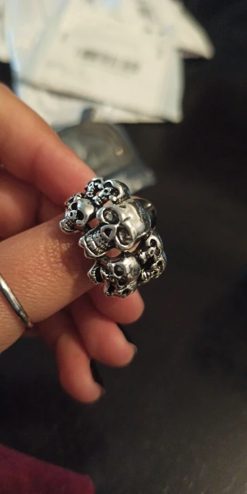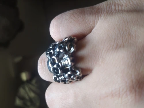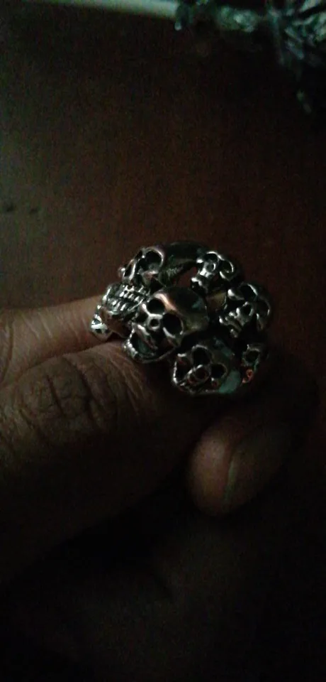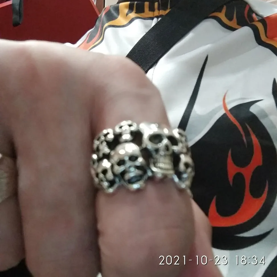 Кольцо черепа большие, это красиво, как описано, это нержавеющая сталь, размер 16 подходит мне немного больше