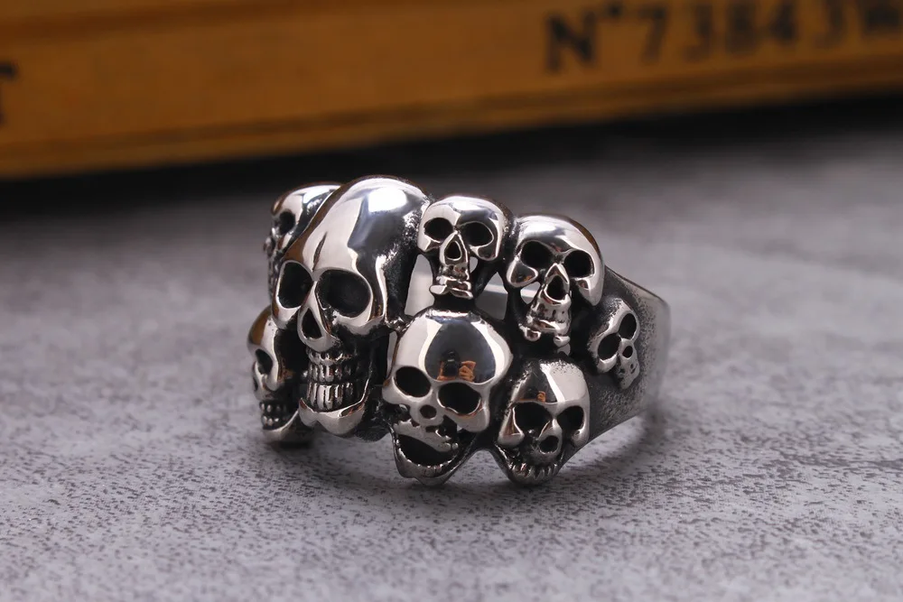 Модное властное мужское кольцо в виде призрака из нержавеющей стали в стиле панк-байкера, кольцо в виде тяжелого сахара, мужское готическое ювелирное изделие