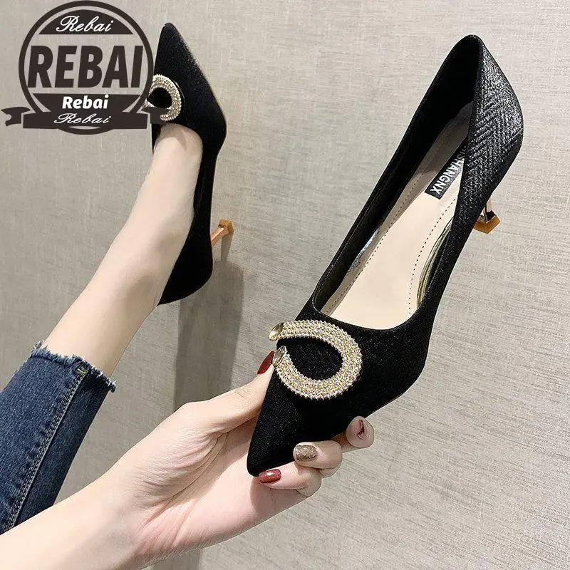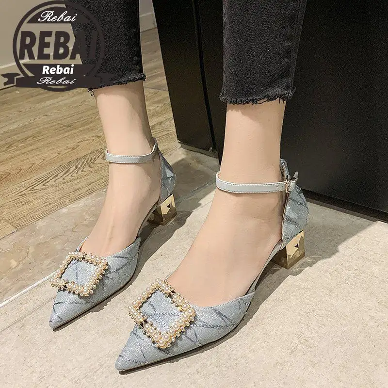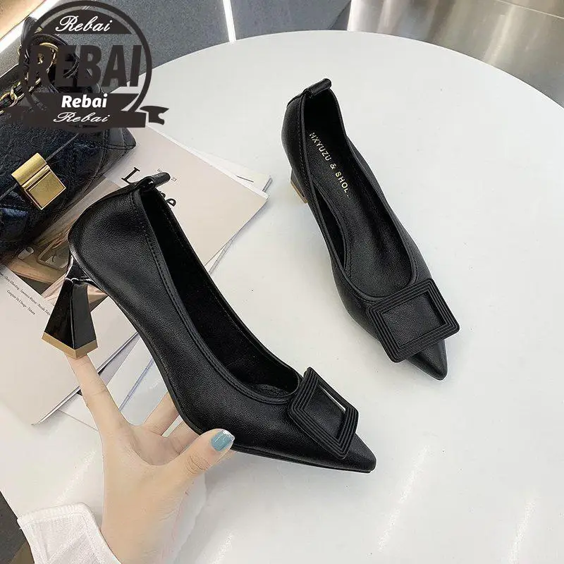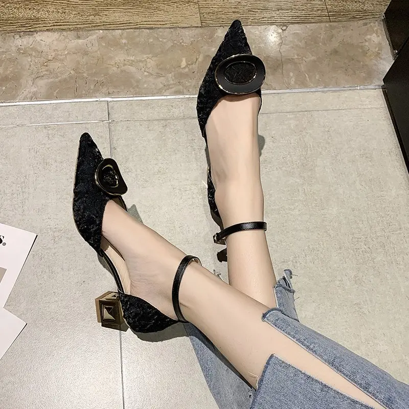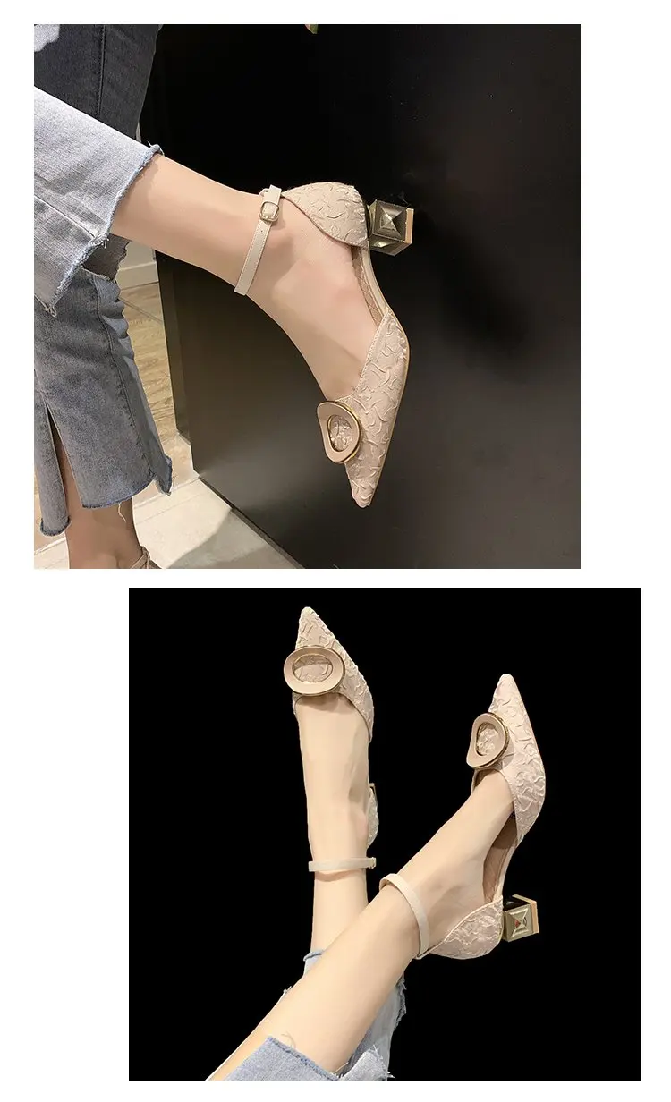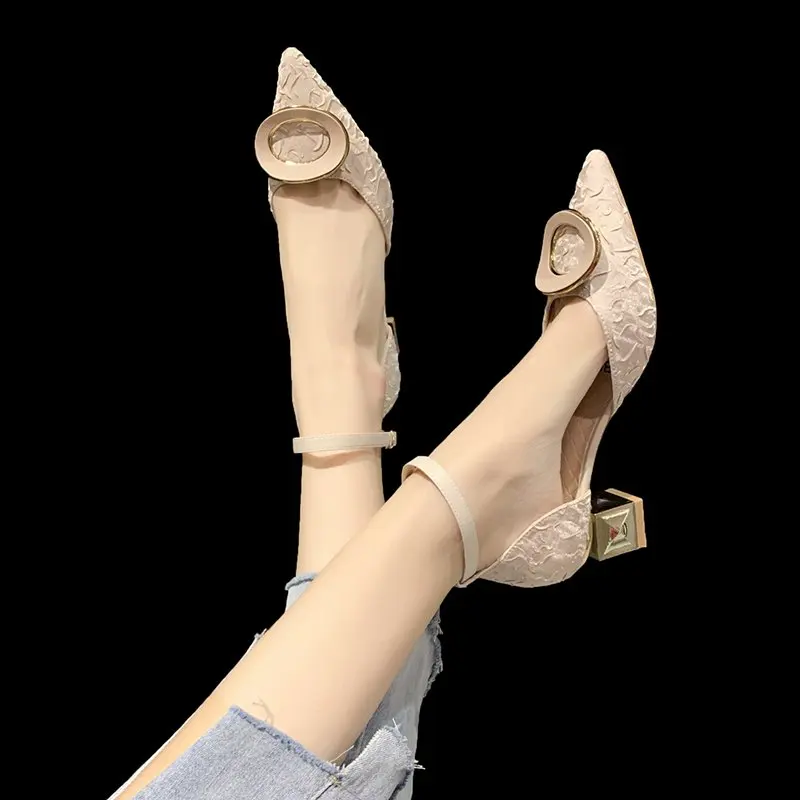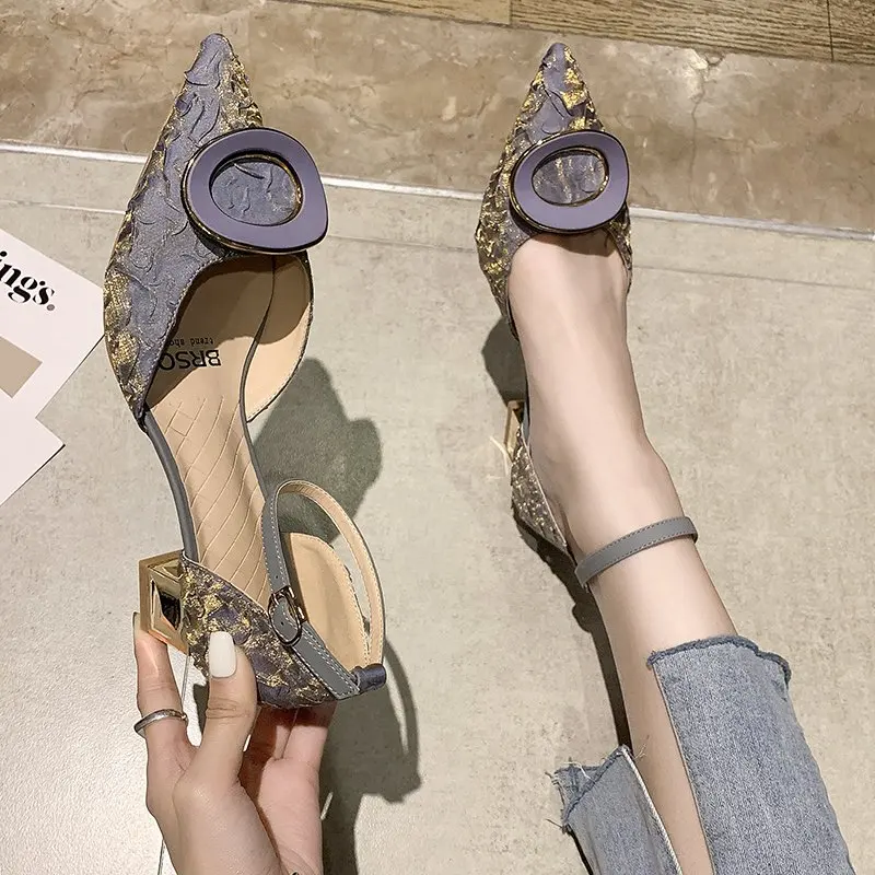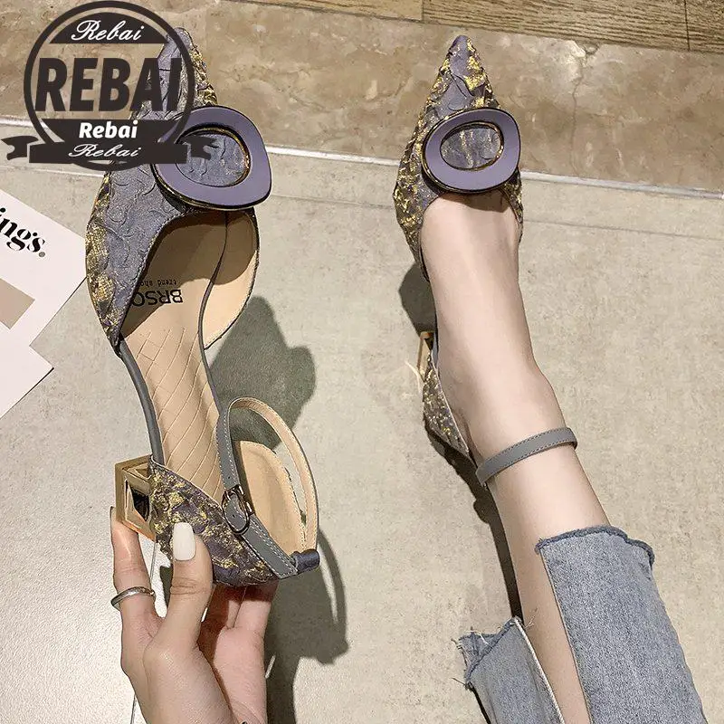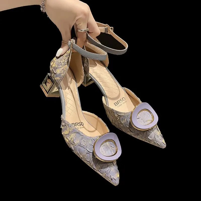 Женские туфли на высоком каблуке, летние дышащие туфли с острым носком и круглым закрытым носком, с пряжкой, 2021