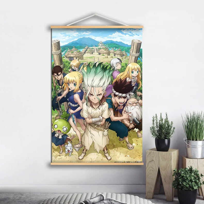 Постер Dr Stone Senku Tsukasa, Аниме Манга, настенный постер из цельного дерева, Свиток, Картина на холсте, настенное искусство, аниме-постер