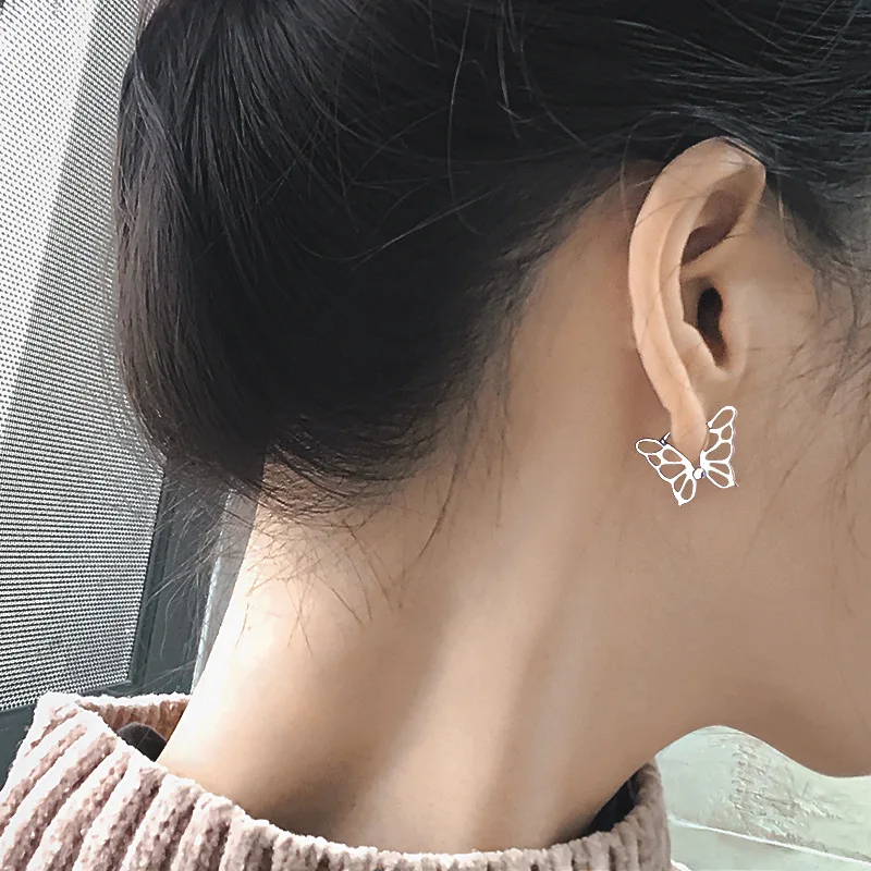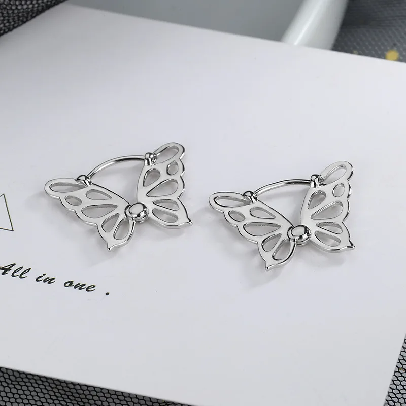 925 стерлингового серебра полый дизайн бабочки серьги-кольца для же...