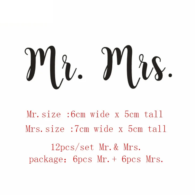 12 шт.компл. Mr и Mrs бокалы для вина стикеры молодоженов, подарок на свадьбу, помолвку хрустальный бокал для шампанского наклейка Свадебные украшения