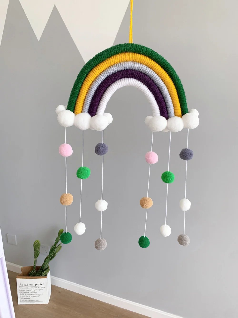 -1. Материал хлопковой нити, не легко повредить, удобно на ощупь.-2. Ручной семинистый Радужный подвесной декор, изысканный и прочный, войлочные шары под радугой милые и шикарные, и может использоваться в качестве отличного фона для гостиной и спальни.-3. Может быть украшен в детской или детской комнате, коридоре, гостиной или любом уголке, который вы хотите украсить.-4. Стиль и цвет завершены, вы можете выбрать правильный стиль в соответствии с вашим собственным стилем украшения дома.-5. Это может привлечь внимание детей, а также это хороший подарок, который может быть дан детям.