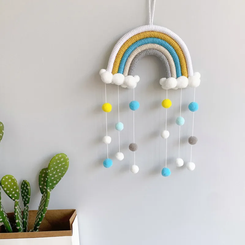 Украшение для комнаты в стиле INS, плетеная хлопковая веревка ручной работы, радужная подвесная декорация, Настенный декор с фетровым шариком, реквизит для фото