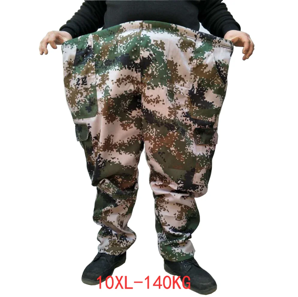 Сезон весна-осень большие Размеры 9XL 10XL мужские брюки-карго с эластичной резинкой на талии размера плюс Размеры в камуфляжном армейском стиле для мальчиков, зелёный, фонарь для кемпинга 140 кг Стиль рабочие брюки