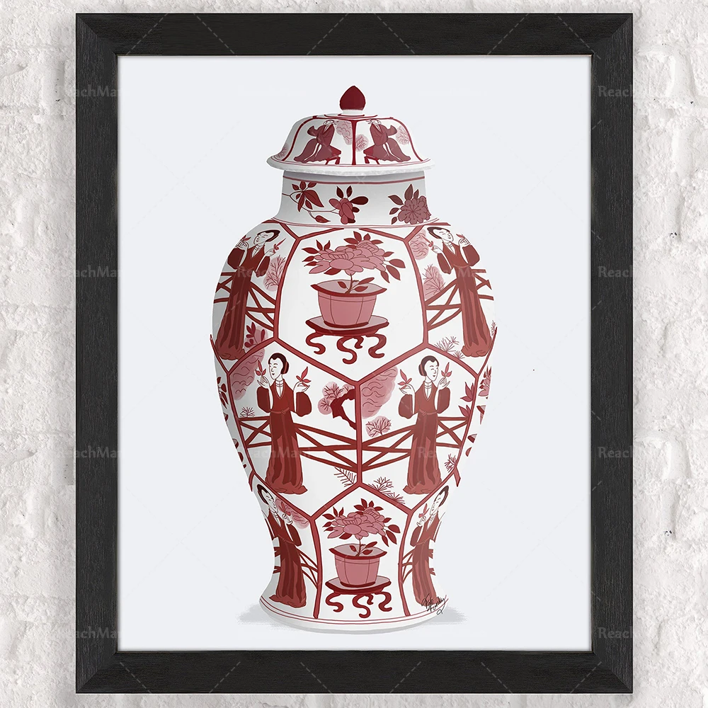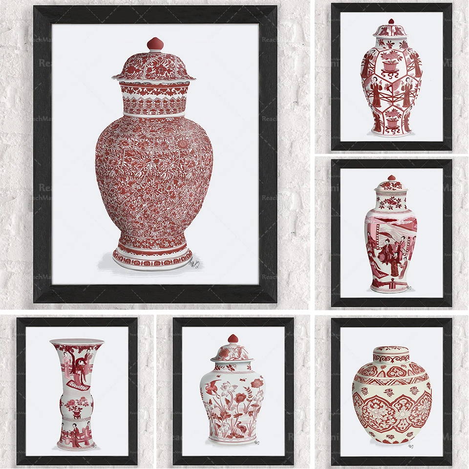 Банка имбиря, принт цветущей вишни, красно-белая китайская ваза, Восточная банка имбиря, домашний декор в Китае, порсе мин
