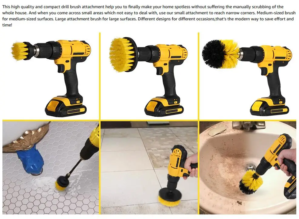 【Легкое, Мощное Очищение 】-это одно из видов креплений для сверлильной щетки мощно Удаляет излишки грязи, пыли и грязи! Не беспокойтесь, тратя время и энергию от требовательных усилий, которые требуется для ручного скраба ваших домашних поверхностей.【Используйте ANYWHERE】-нейлоновые щетинки средней жесткости не царапают ваши поверхности ванной и душевой плитки. Независимо от того, хотите ли вы почистить свою ванную комнату или пол, этот удивительный инструмент-это ваше очищающее решение! Этот набор был искусно разработан для очистки поверхностей ванной комнаты, решетки, обивки, колес, плитки, душа, туалета, кухни, ванной и ковров и т. Д. Расширенное крепление позволяет вам попасть в узкие места и труднодоступные места для тщательной очистки.【ULTIMATE COMPATIBILITY】-Три головки кисти разных размеров позволяют легко удалять труднодоступные или большие поверхности. Действительно идеальный способ сделать каждый уголок и место вашего дома абсолютно безупречным! Кисти помещаются практически во все беспроводные дрели, включая Dewalt, BLACK + DECKER, Bosch и Makita и т. д.【Быстрое изменение шафт】-когда вы готовы изменить насадку щетки для очистки сверла просто Вытяните наши инновационные Быстросменные валы и легко Установите новую щетку. Прижмите щетку к поверхности, которую вы хотите очистить, и начните сверление. Ваша поверхность будет безупречной в кратчайшие сроки【Отличное обслуживание 】-мы гарантируем, что этот набор инструментов для дрели удовлетворит все ваши потребности в очистке. Это возможность быть универсальным и удовлетворить все ваши потребности в уборке! Но если по какой-то причине вы не удовлетворены своей покупкой, мы организуем возврат для замены комплекта или возврата Ваших денег.