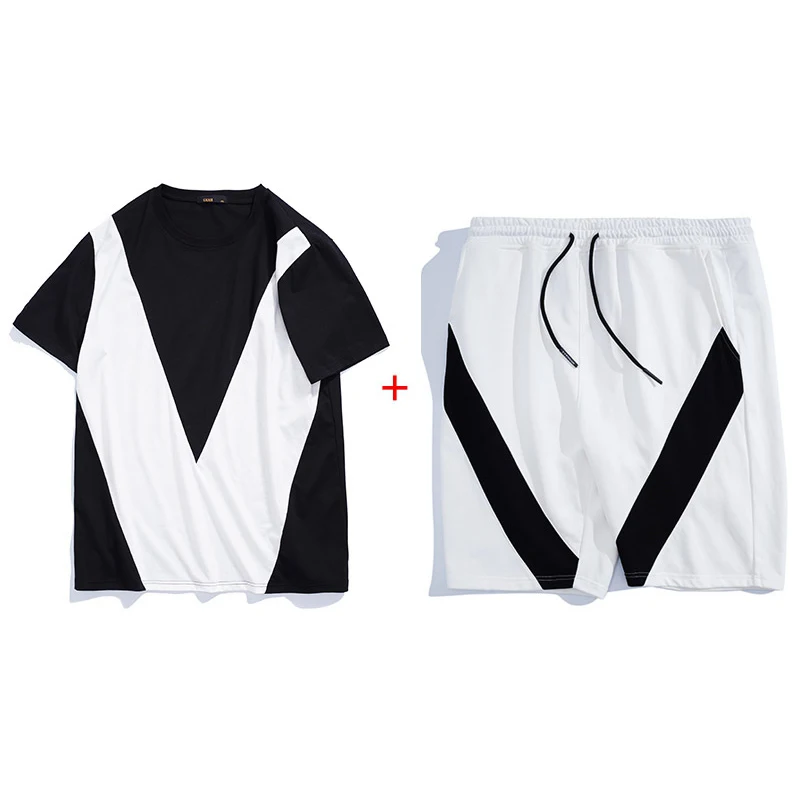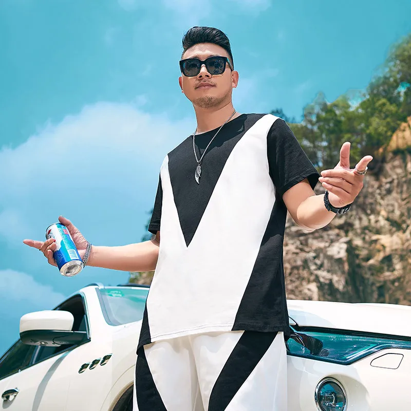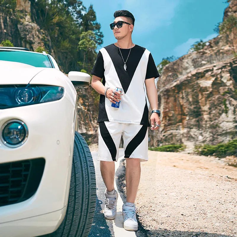 GXXH спортивный костюм для мужчин, летнее платье в стиле "Ретро", большой Размеры XXL-7XL повседневные шорты для мальчиков с коротким рукавом, новинка, хит продаж, Мужская футболка, контраст оувери Размеры d комплект из двух предметов одежды