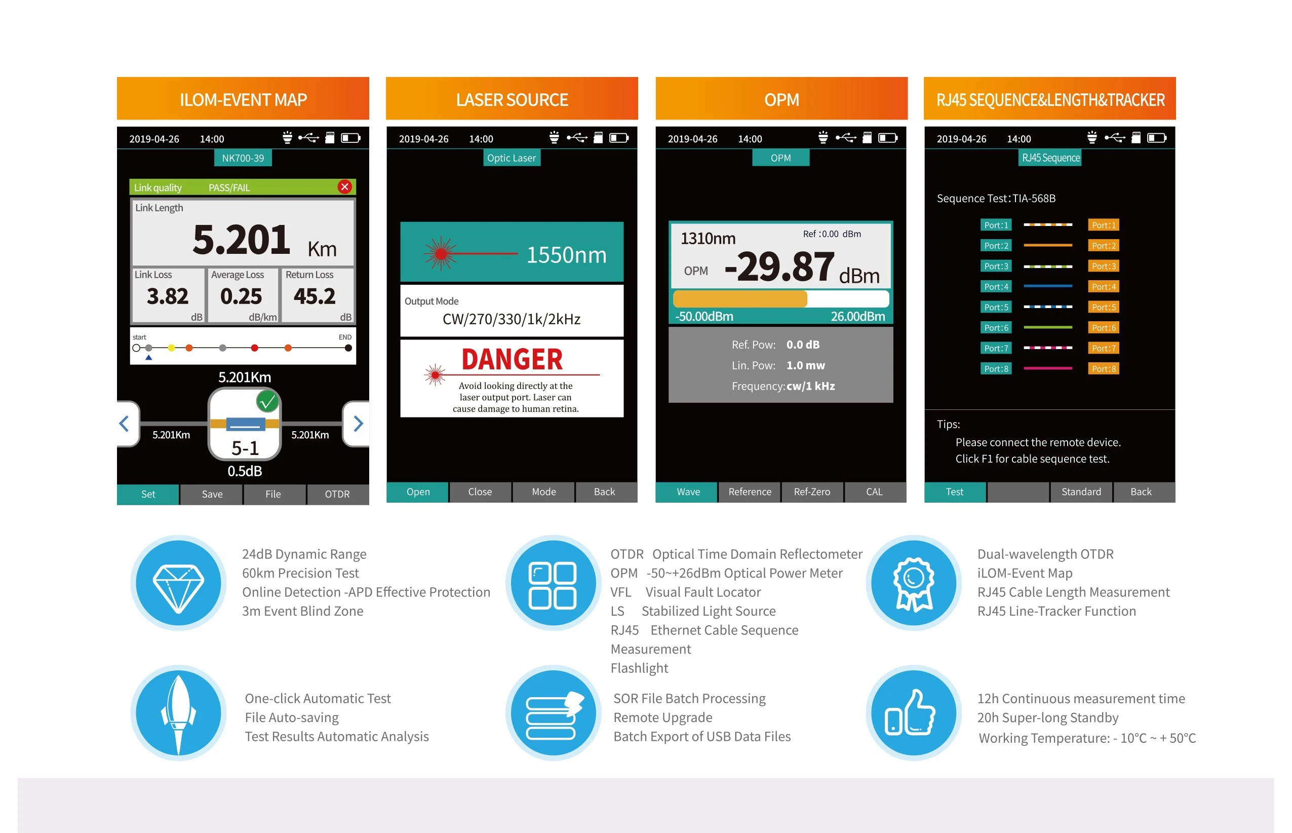 Мини-рефлектометр с 9 функциями VFL OLS OPM, карта событий, кабель ...