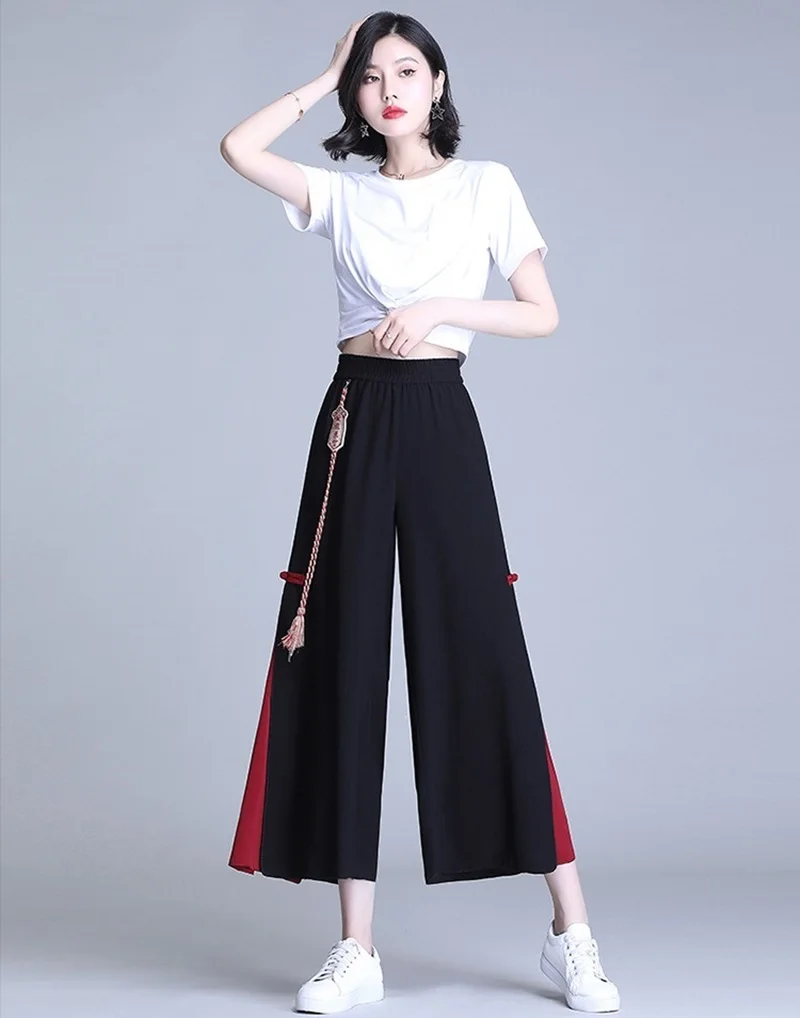 Черные женские брюки кунг-фу, винтажные шифоновые Повседневные брюки в китайском стиле, Новинка лета 2021, свободные брюки в стиле Харадзюку, женские брюки