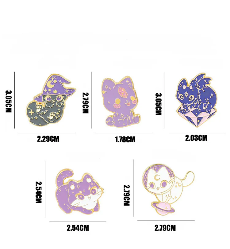 Брошь на лацкан, с изображением фиолетового кота, с эмалью, белого цвета, брошь с животными