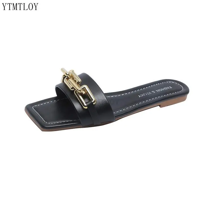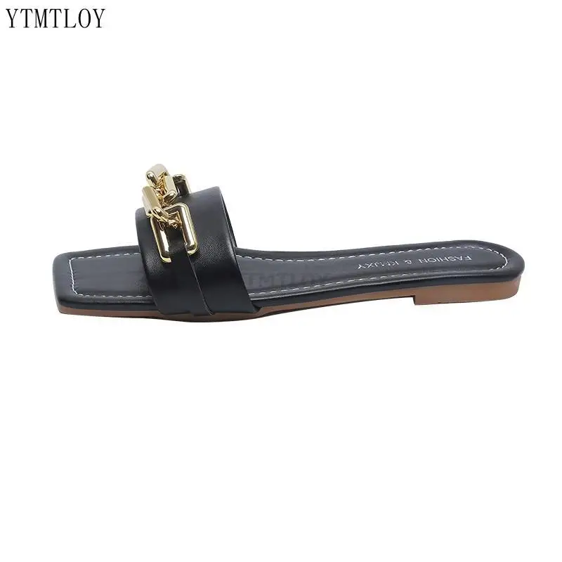 Тапки женские мягкие, сланцы, удобная домашняя обувь, плоская металлическая отделка, Ytmtloy, 2021