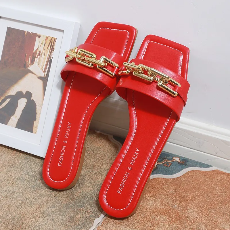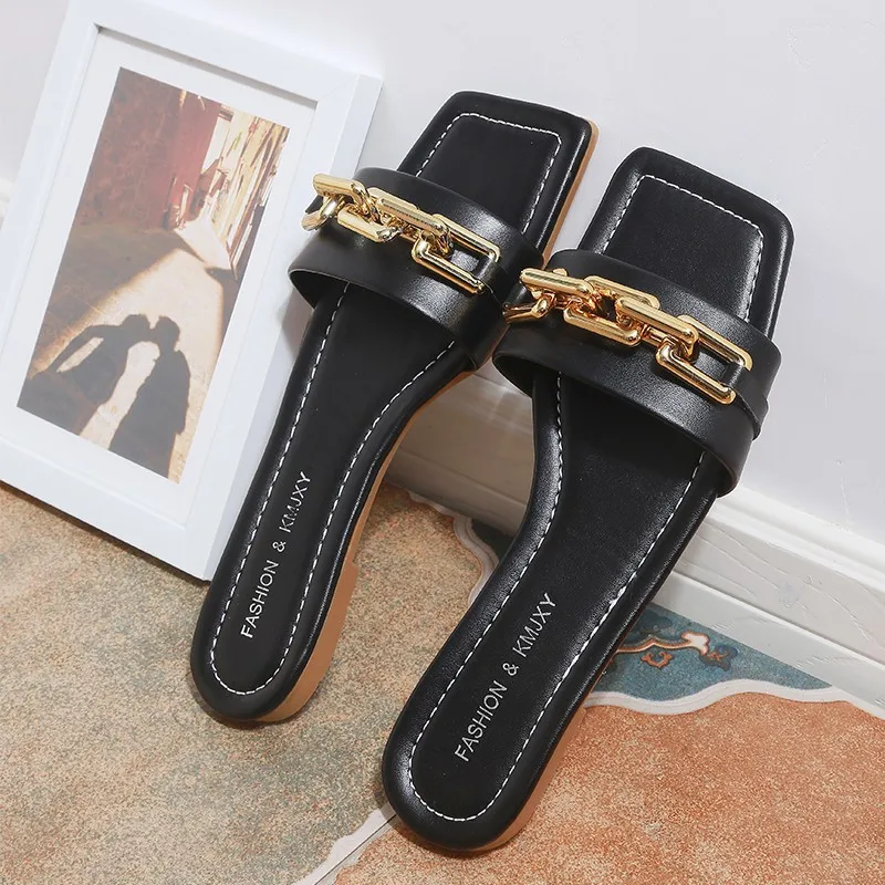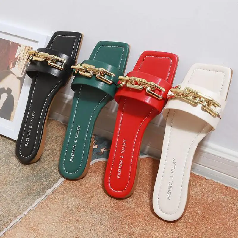 Новые женские тапки на металлической цепочке, женская обувь 2021, д...