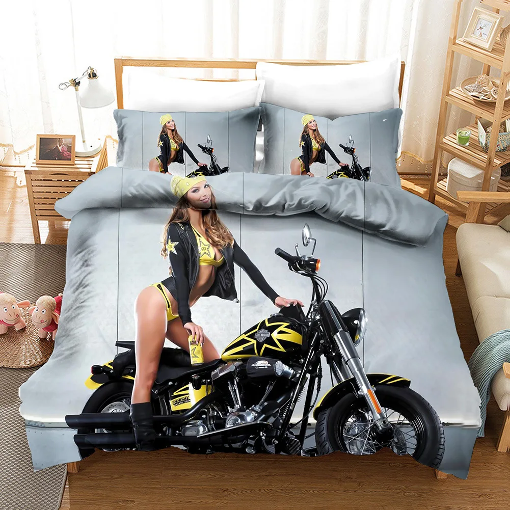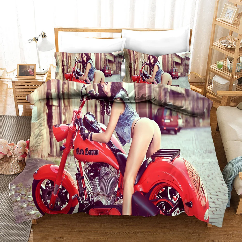 Likurb мотоциклетный сексуальный бикини красивый пододеяльник чехол подушка чехол Комплект постельного белья двойной полный Королевский размер для мужчин женщин мужчин спальня