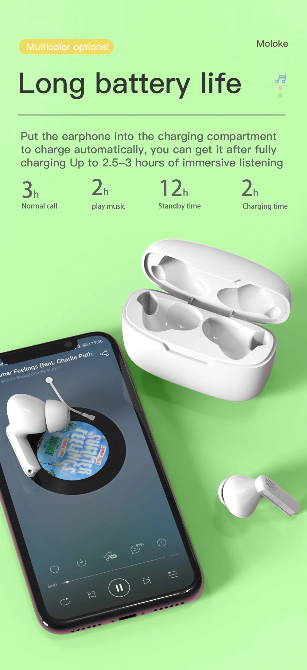 Спецификация продукта: 1. Вес продукта: 5-6 г (один наушник). 2. Время работы: около 3-5 часов. 3. Время ожидания: 200 ч 4. Время зарядки: 1-1,5 часа. 5. Емкость аккумулятора одного наушника: 30 мАч. 6. Зарядное устройство Betty: 300 мАч. 7. Расстояние беспроводной связи: 10 м. 8. Совместимость с мобильными телефонами: наушники совместимы с Android, IOS, Microsoft и т. д. Упаковочный лист: 2 * мини-наушники Bluetooth 1 * зарядная коробка 1 * USB-кабель для зарядки (освещение) 1 * Руководство пользователя Характеристики продукта: 1. Прослушивание песен и звонков, поддержка прослушивания песен и совершения звонков, 2. Номер вызывающего абонента, обратный вызов с последним кодом, полные интеллектуальные подсказки на китайском и английском языках, включение питания, сопряжение, выключение и выключение телефона и т. д. 3. При каждом подключении Bluetooth-гарнитуры к телефону Bluetooth-гарнитура автоматически подключается к телефону при его включении, что удобно и быстрее. 4. Интеллектуальная Совместимость: Поддержка всех мобильных телефонов с функцией Bluetooth, планшетов, ноутбуков, воспроизведения музыки, просмотра фильмов и т. д. 5. Поддержка всплывающего окна ios13.2 выше 6.Bluetooth 5,0 7. Переименование, позиционирование GPS (поддерживает только систему IOS с Bluetooth версии 13,2 и выше) 8,3 реальное окно батареи 9. Сенсорное управление 10. Супер бас 11. Автоматическое включение 12. Автоматическое отключение 13. Бинауральные звонки 14. Предыдущая песня, следующая песня 15. Поддержка ежедневной водонепроницаемости и защиты от пота (не поддерживает промывание и замачивание) О прямой поставке 1. Принимаем прямые поставки, мы не помещаем в посылку никаких счетов-фактур, QR-кодов, рекламных акций, поэтому не волнуйтесь, просто покупайте, мы сделаем все, что угодно для вас. 2. Мы гарантируем тщательную проверку каждого устройства перед отправкой, поэтому все продукты могут гарантировать 100% Высокое качество перед отправкой. 3. Для оптовых закупок доступны Скидки Большое спасибо!