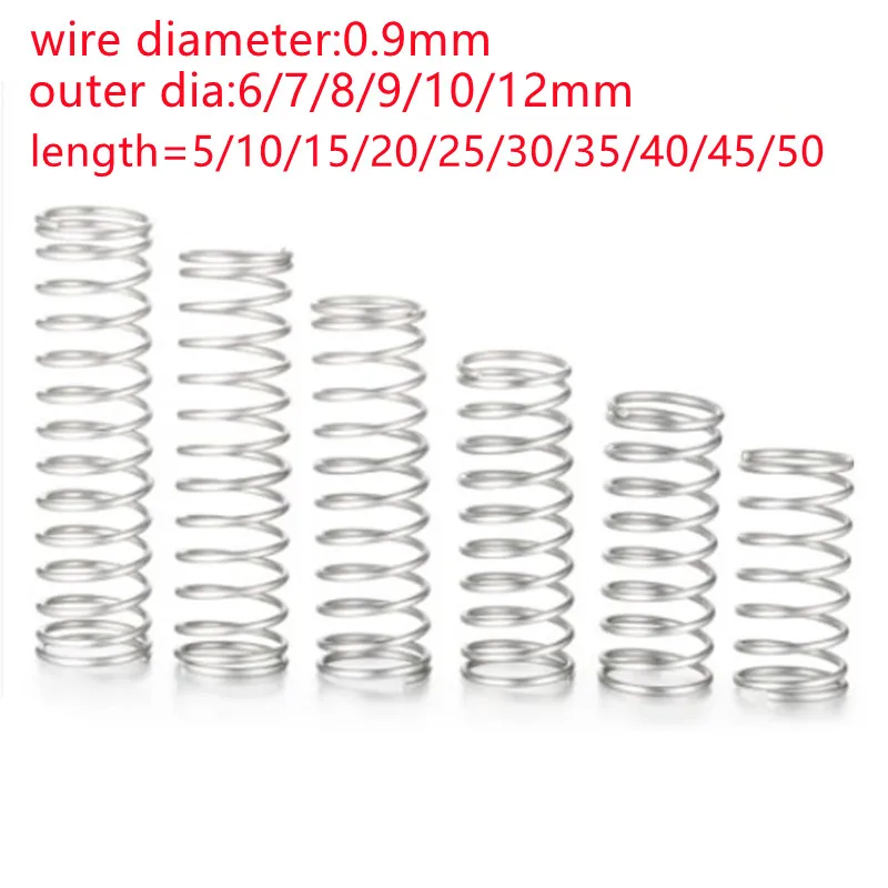 Пружина сжатия из нержавеющей стали, 10 шт.лот, 0,9 мм, внешний диаметр 6-12 мм, длина 10-50 мм
