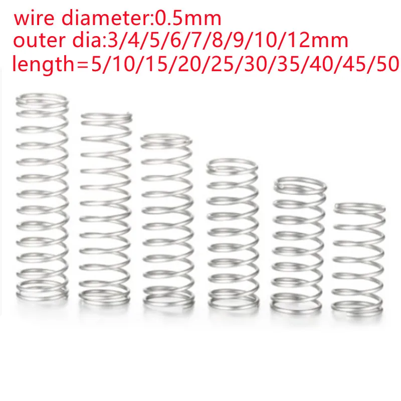 10-20 шт.лот 0,5 мм нержавеющая сталь микро маленькая компрессионная пружина OD 3 мм4 мм5 мм6 мм7 мм8 мм9 мм10 мм12 мм Длина от 5 мм до 50 мм