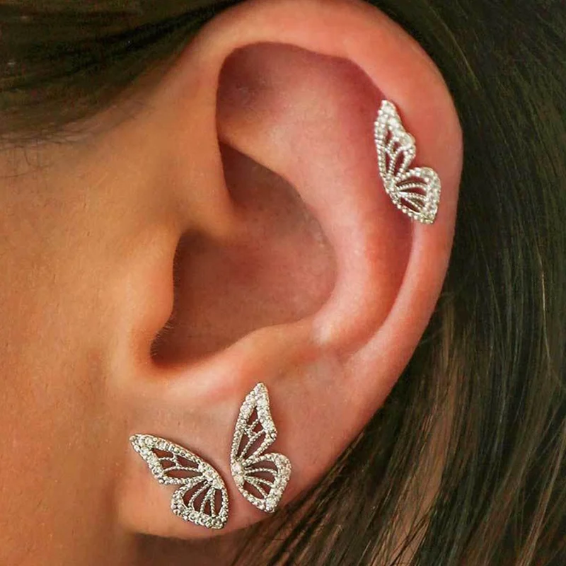 2021 Новый Золотой розовое золото Цвет стразы бабочка серьги-гвоздики в виде крыльев для женщин милые маленькие хрустальные серьги-гвоздики