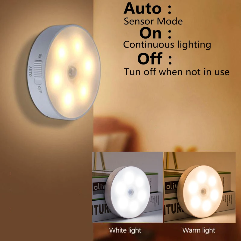 Светодиодный ночсветильник с датчиком движения, беспроводной индукционный светильник с зарядкой от USB, освесветильник для шкафа, ванной, лестницы, стены, кабинета, комнатного освещения