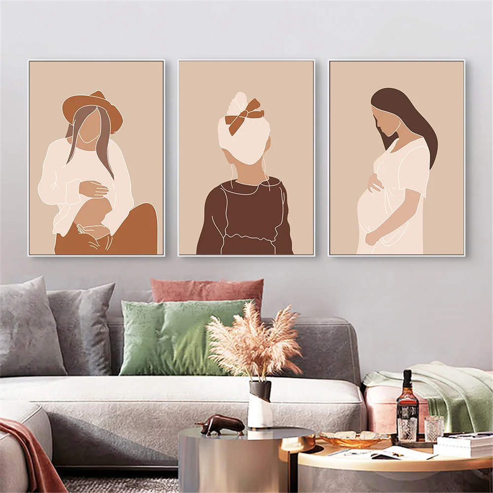 Плакат на стену в скандинавском стиле с изображением беременной женщины, с надписью любовь, мать и ребенок, модные художественные принты, современные картины, декор для гостиной