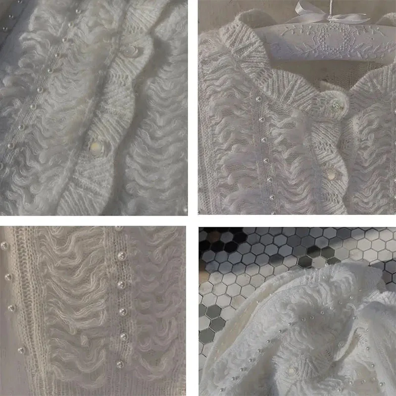 Кардиганы женские однотонные в стиле ретро с жемчугом и вырезами ми...
