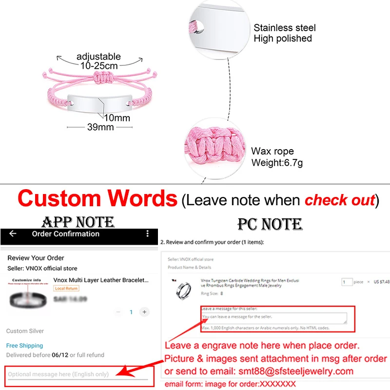 8. Как отметить текст и изображение? Укажите номер изображения внутри ().Например: черный шрифт 50, гравировка: Lucy (165) навсегда.Ваш собственный образ, пожалуйста, отправьте вложение в сообщении или отправьте на электронную почту: smt88 @ sfsteeljewelry