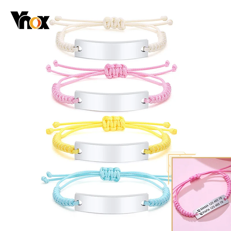 Персонализированные Гравированные детские браслеты Vnox для девочек и мальчиков, регулируемая длина, Плетеный ремешок, браслет из нержавеющей стали, пользовательский подарок