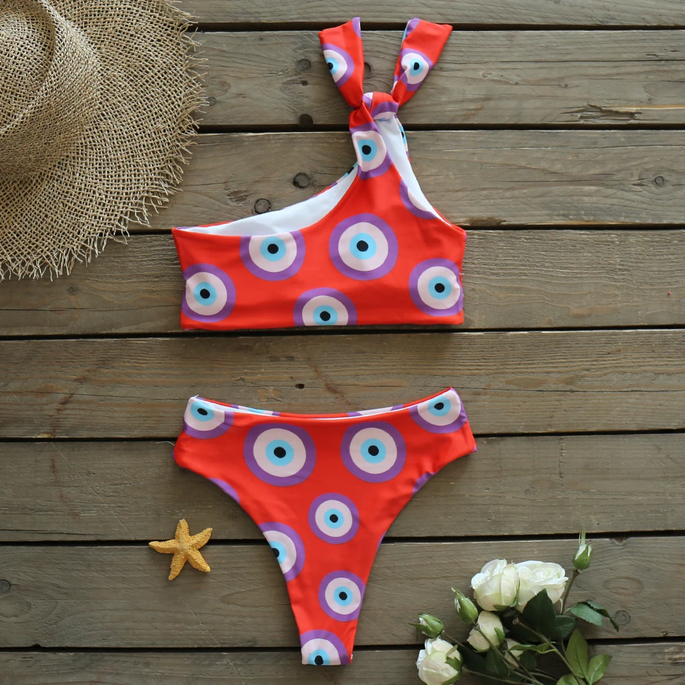 Новинка 2021, сексуальные бикини, женский купальник с принтом глаза, купальный костюм с высокой талией, пляжная одежда, женское бикини на одно плечо