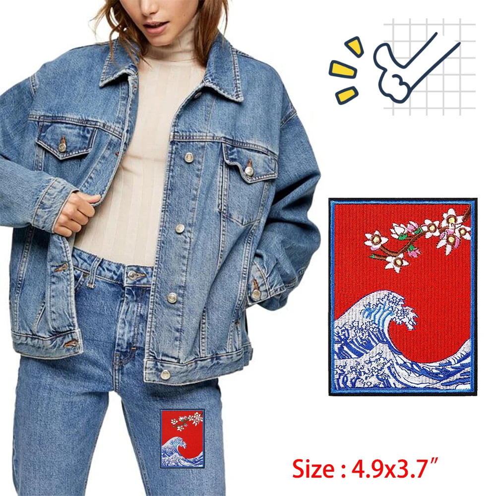 Хокусай Ukiyoe Вышивка Патчи для Глажка одежды или пришить значки японский канагава культуры морская волна арт куртки аксессуар