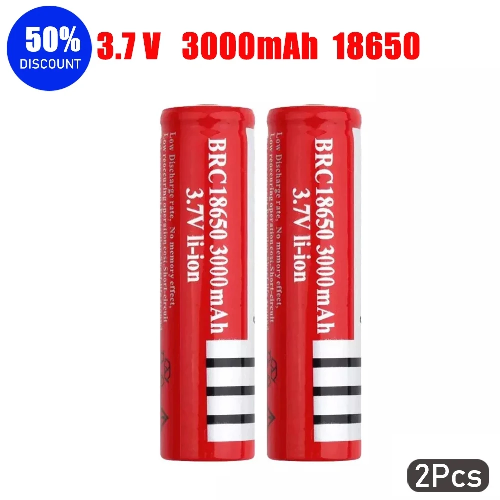 2 шт., перезаряжаемые литий-ионные батарейки, 18650 в, 3,7 мАч