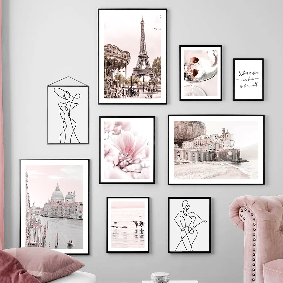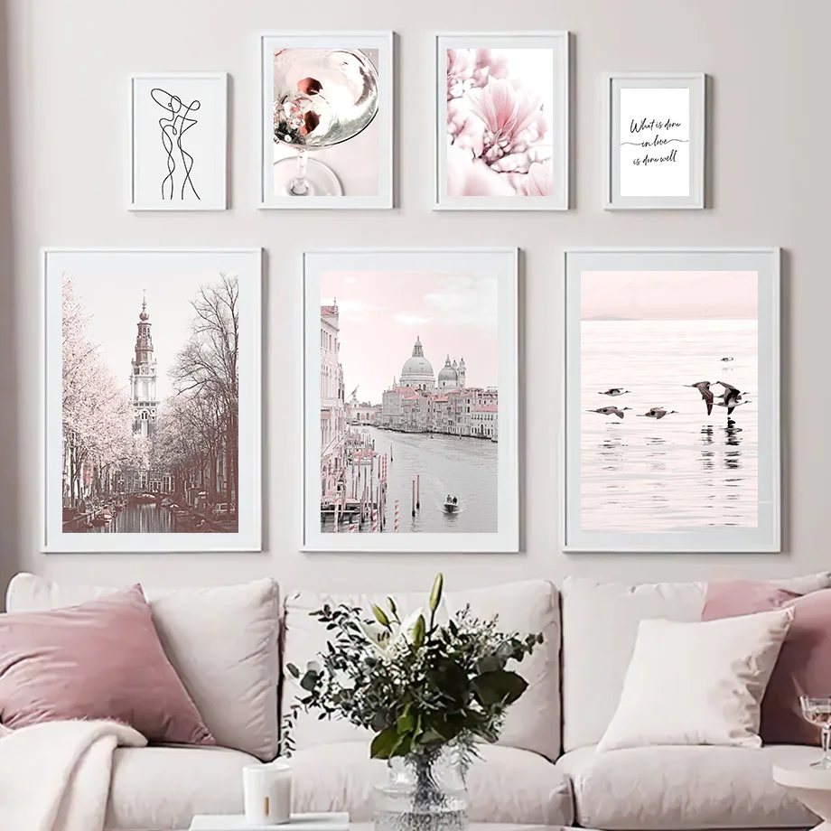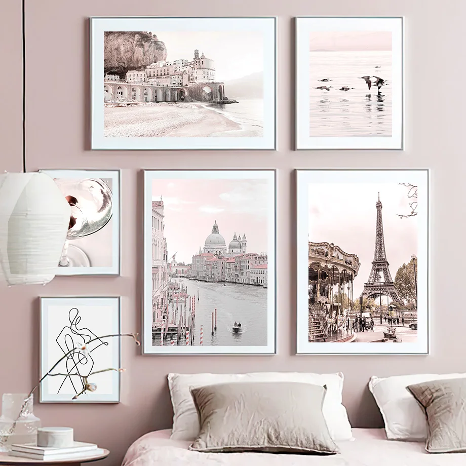 Настенная картина европейский город Building Seagull Flower, настенная Картина на холсте, скандинавские плакаты и принты, настенные картины для гостиной, домашний декор