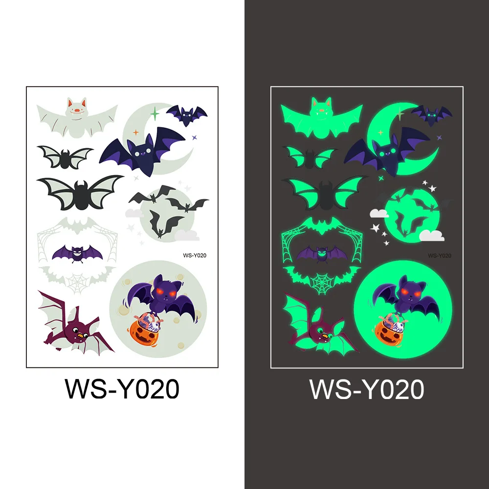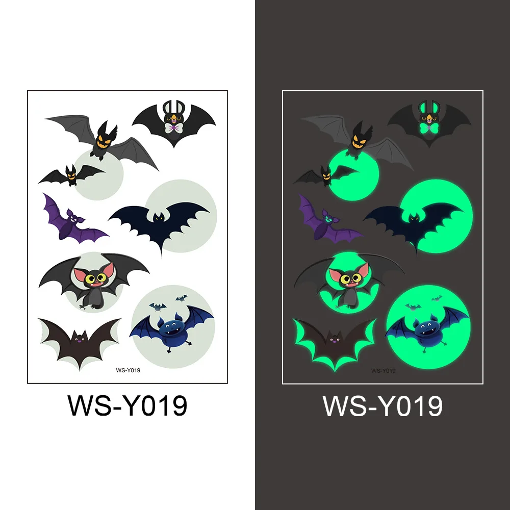 Хэллоуин тату наклейки светящиеся Детские Временные татуировки паста для детей боди-арт наклейка в форме летучей мыши (Y011-Y020)